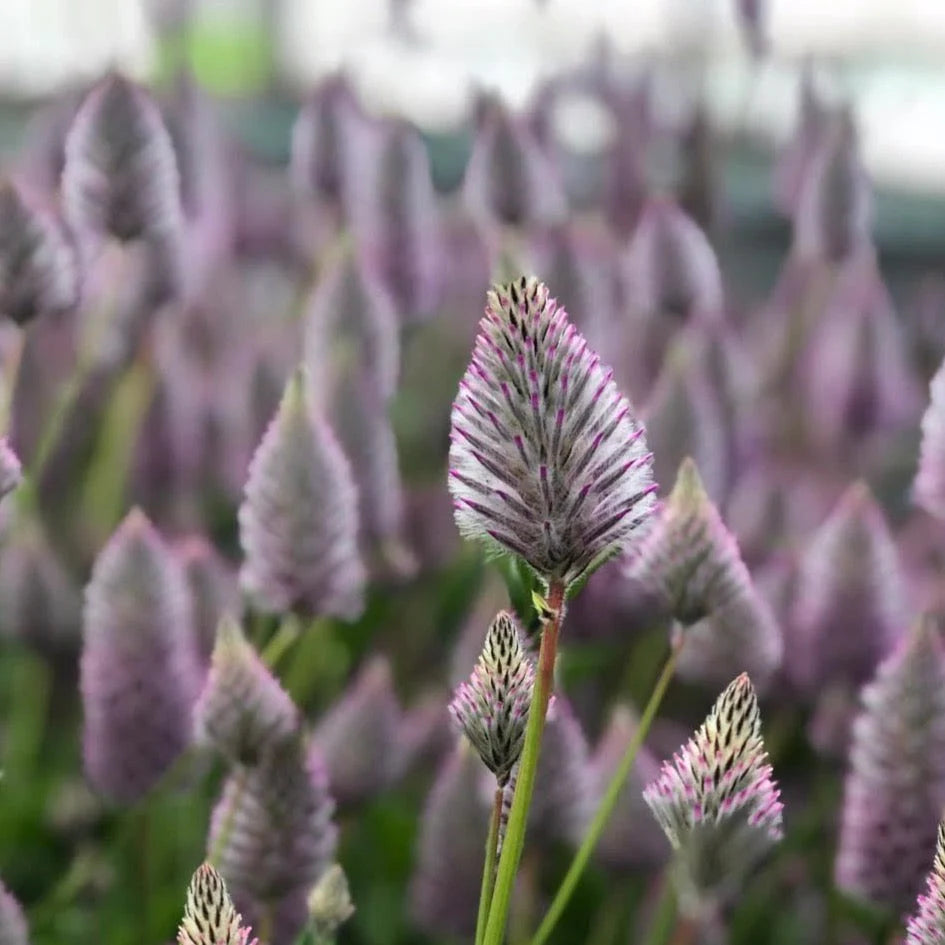Every single person wandering through your garden will be captivated by Ptilotus because it is just the most unique creature! Ptilotus or Pink Mulla Mulla, from the Amaranthaceae family is most often grown as an annual, but perennializes in the warmer zones of 10 & 11. The genus is Ptilotus and the species is P. exaltatus. The pointed feather purple tops of these flowers are reminiscent of the baby troll doll heads of the 1990s. Ptilotus have a nice duality of spiky but soft appearance so they can add both drama or subtle lavender color to any floral arrangement. Their durable and tall stems make Ptilotus a great candidate for straight bunch bouquets, either with a bold singular stem or any of the 3 spray techniques suggested by Benary (the breeder). These Australian native plants love sandy soil, hot weather and are drought tolerant. They are a great addition to the driest part of your field.